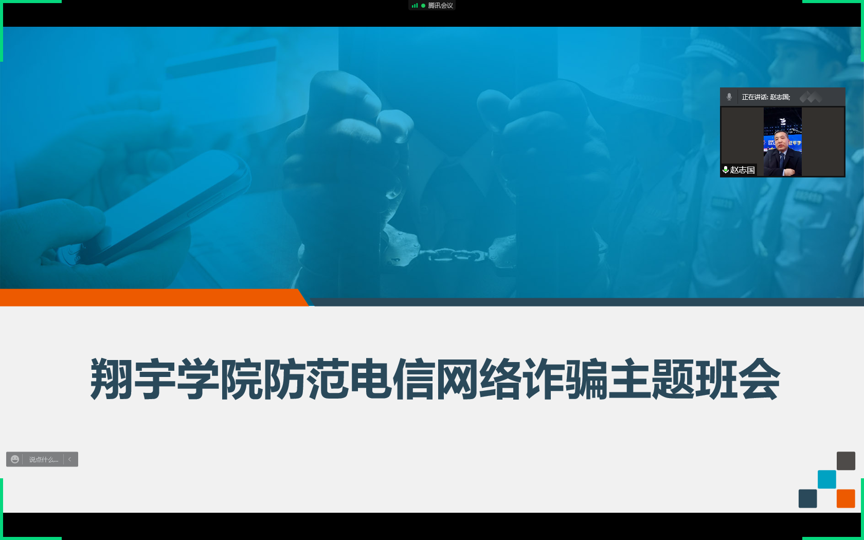 3月2日下午,我院分年级召开线上防电信网络诈骗主题班会。翔宇学院全体班主任、辅导员、学生参与此次班会。