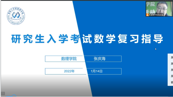 图为数理学院张庆海授为同学们做考研数学专题讲座