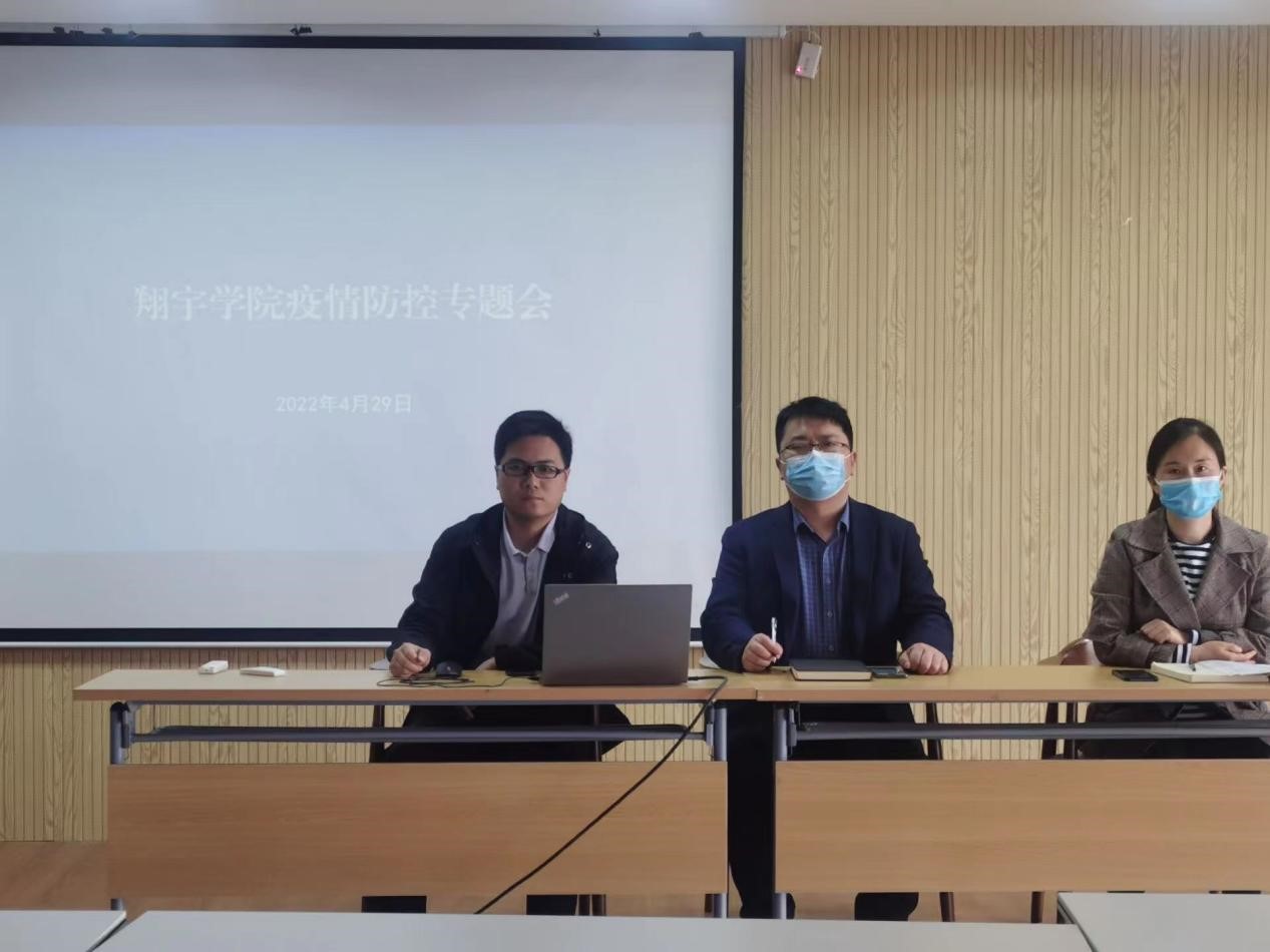 4月29日下午,翔宇学院召开疫情防控工作会议,专题部署推进学院疫情防控工作。院直属党支部书记刘毅出席并讲话,学工办副主任王云飞主持会议。
