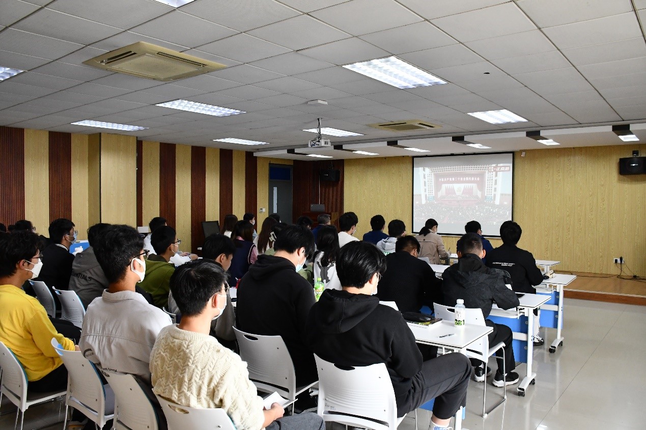 10月16日上午,创新创业学院直属党支部于逸夫楼YF814组织集中观看党的二十大开幕会。直属党支部书记刘毅、院长赵志国、副院长冯云平、直属党支部全体党员以及入党积极分子代表集中进行了观看。