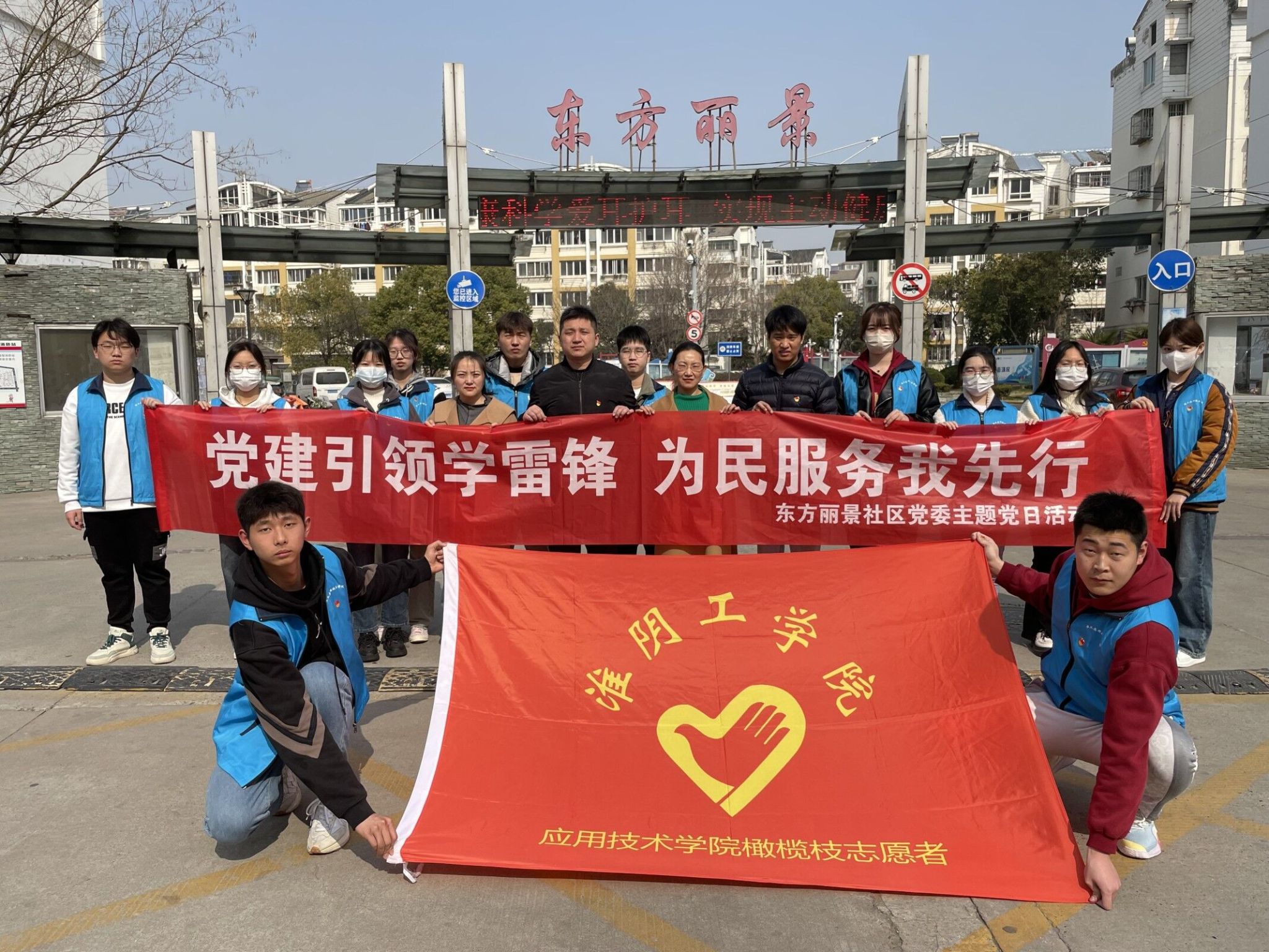 在第60个全国学雷锋纪念日即将来临之际,为响应党中央的号召将雷锋精神深入贯彻到青年学生群体中。3月4日上午,淮阴工学院应用技术学院团委组织了15名党员志愿者代表深入东方丽景社区开展“党建引领学雷锋 为民服务我先行”志愿服务活动。