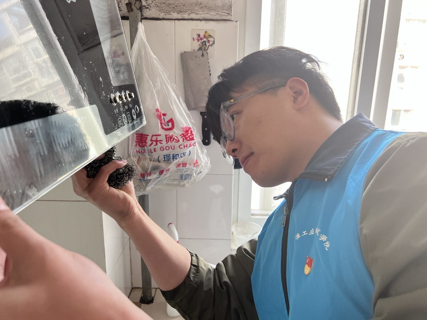 一个个“健康卫士”志愿者带着清洁工具来到几位老人家中当“家政”,一进门就撸起袖子,“全副武装”开始了大扫除。擦洗玻璃门框、打扫屋内卫生、摆放生活物品、帮忙择菜洗菜、清洗厨房油烟机,每个人干劲十足。经过2个多小时的辛苦付出,房间面貌焕然一新,客厅干净整洁,物品摆放有序。志愿者们还贴心地为老人送上慰问品,陪伴他们聊天,了解他们的生活和身体状况,向他们宣传卫生健康知识。