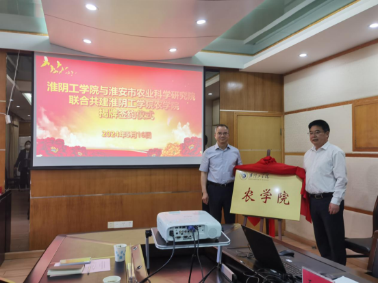 郑锋与彭杰为淮阴工学院农学院揭牌