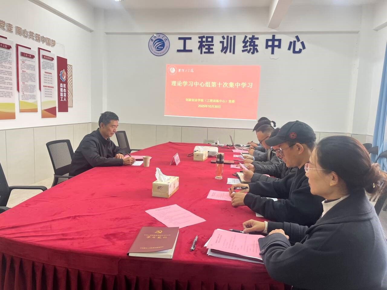 10月30日下午,创新创业学院(工程训练中心)党委在2-201会议室举行党委理论学习中心组学习会。校党委委员、机材学院党委书记马从兵出席会议并讲话。会议由学院党委书记蒋青松主持,学院党委委员及科级干部参加会议。
