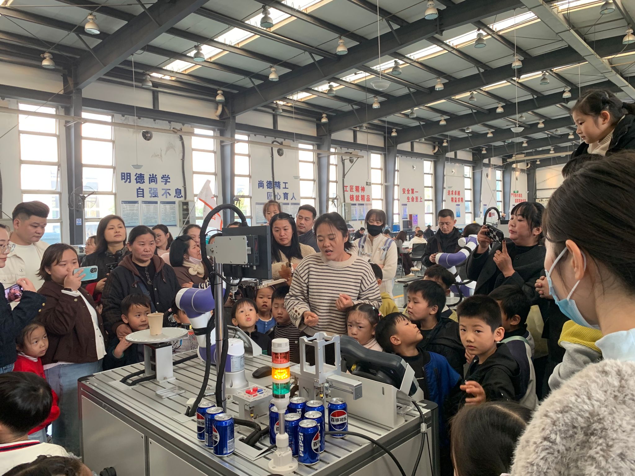 在充满期待的3D打印区,孩子们与家长一起,亲眼见证了一个塑料丝如何层层堆叠,最终“变”出一个立体实物的神奇过程。最让孩子们欢呼的莫过于工业机器人表演。灵活的机械臂宛如一个专业的服务员,精准地抓取、拧盖、递送,将一瓶瓶可乐送到孩子手里,让孩子们切身感受到了科技为生活带来的便利与乐趣。