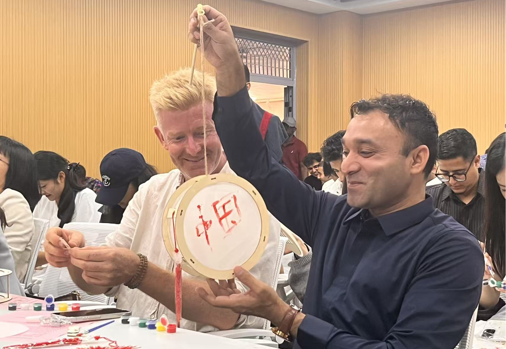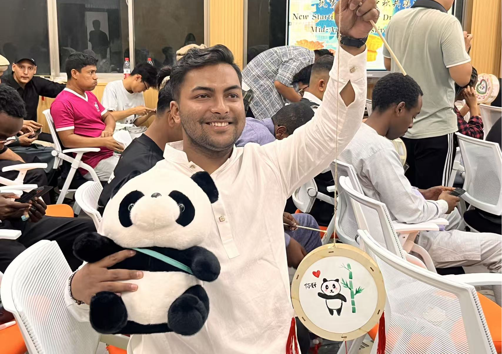 文艺表演间隙,做花灯与抽奖同步开展。主持人简要介绍花灯从宫廷照明到节日装饰的缘起,学子们领取材料发挥创意,或绘传统图案、或融本国元素,很快制成各色花灯,点亮后格外亮眼。抽奖环节中,幸运号码公布时,中奖者喜笑颜开,未中奖者亦欢呼祝贺,氛围持续升温。
