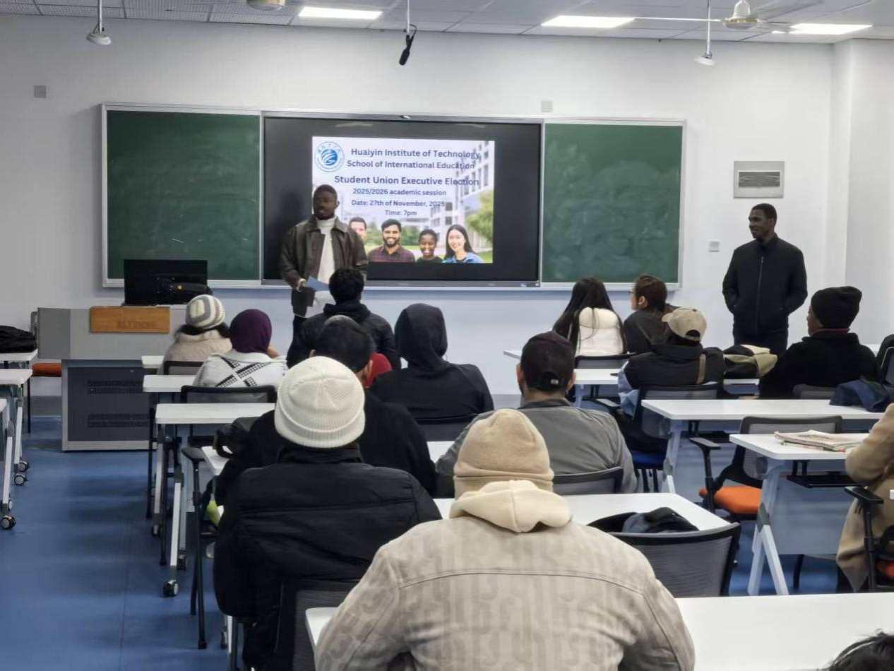为进一步加强留学生服务管理,搭建跨文化交流桥梁,淮阴工学院国际教育学院留学生学生会换届选举大会于11月27日圆满落幕,新一届学生会干部团队正式组建。12月3日,国际教育学院在枚乘路校区召开留学生学生会全体成员工作会议,明确工作重点与年度方向,为接下来留学生工作有序开展奠定坚实基础。国际教育学院副院长于敏、留学生辅导员李众、新生班主任胡婷婷出席换届选举活动。